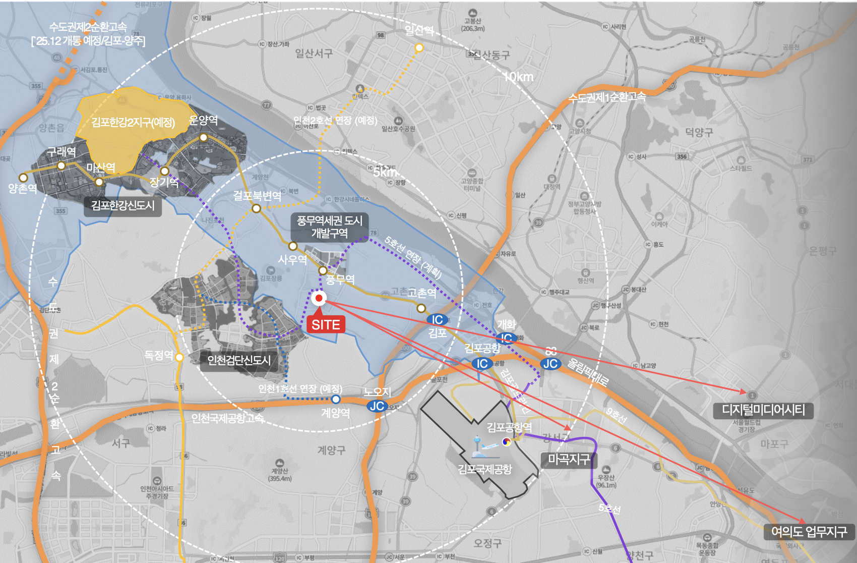 풍무지구 일대는 김포한강선(서울 5호선 연장)의 핵심 통과 지역으로, 풍무역 복합환승센터 및 인근 업무지구 개발이 예정돼 있습니다. 여기에 김포도시철도 2단계 연장계획 및 서울 강서권과의 연계 강화로 교통 프리미엄 확대가 기대됩니다. 전체 양도지구가 체계적인 도시계획 하에 개발되고 있다는 점에서 미래가치가 높습니다.