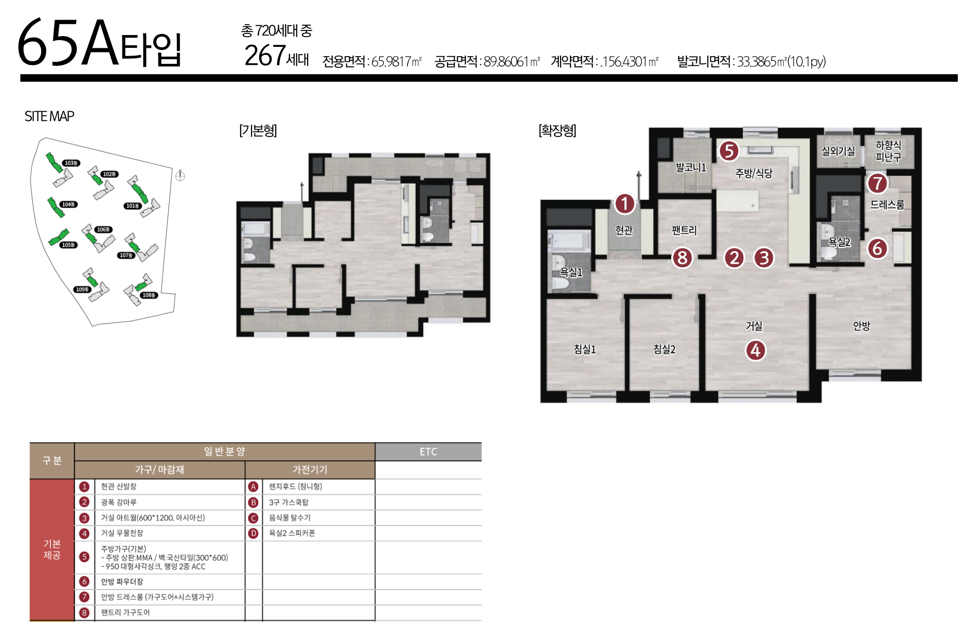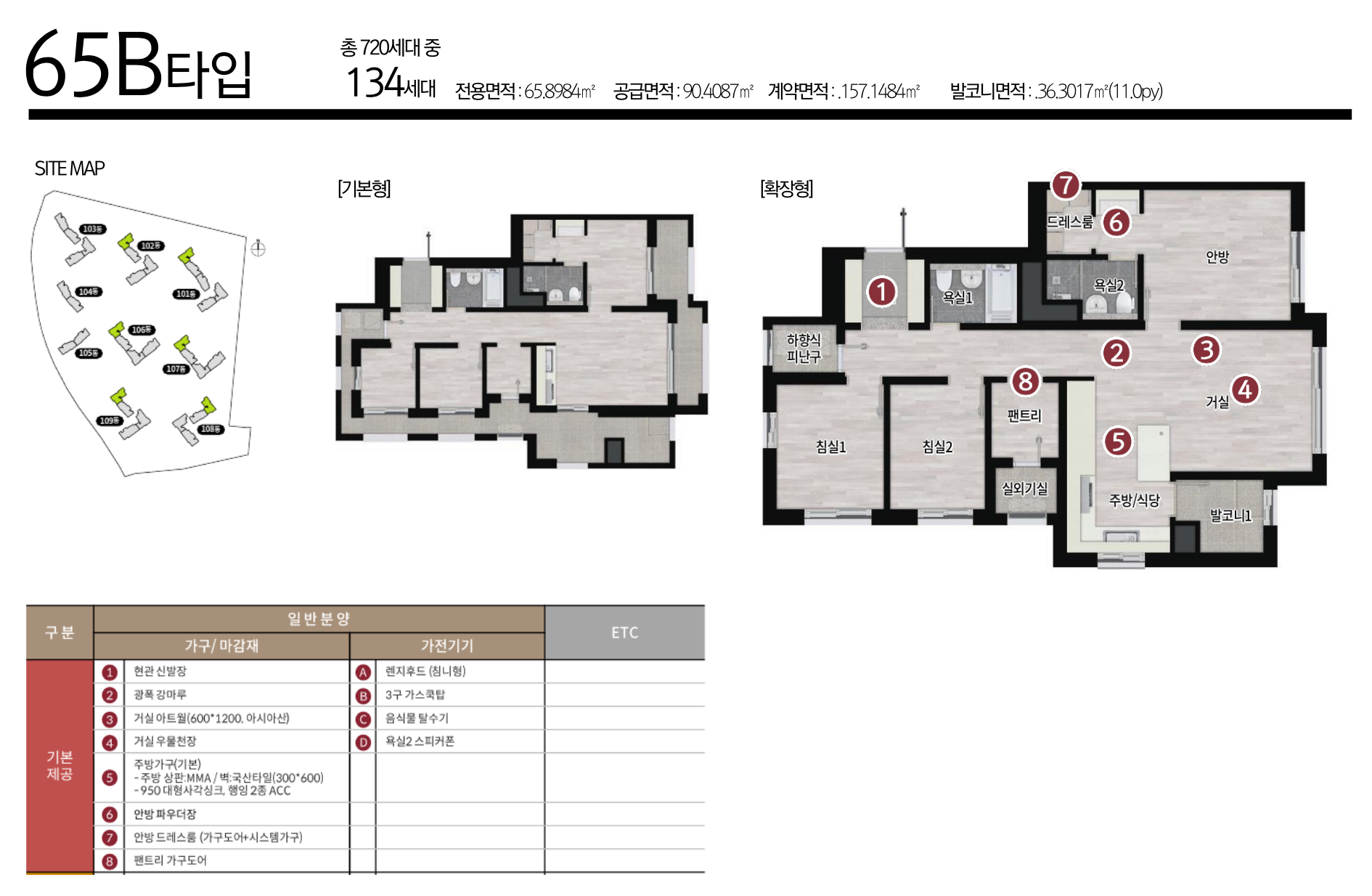 풍무역 롯데캐슬 시그니처는 남향 위주의 배치와 4베이·판상형 구조를 중심으로 설계됐습니다. 전 세대에 팬트리와 드레스룸이 제공되며, 별도의 창고 공간도 마련됩니다. 타입별로는 65㎡A 267세대, 65㎡B 134세대, 75㎡A 59세대, 75㎡B 39세대, 75㎡C 23세대, 84㎡A 98세대, 84㎡B 100세대로 구성됩니다.