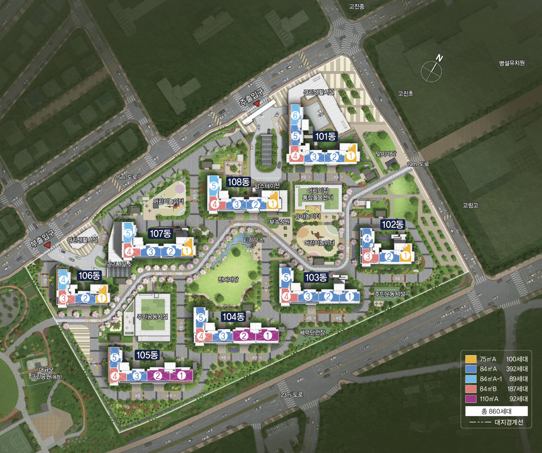 입주민 전용 피트니스센터, 골프연습장, 스크린골프장, 주민카페, 작은도서관, 스터디룸 등이 조성됩니다. 다양한 커뮤니티 시설은 주거 만족도를 높이고 입주민 교류를 활성화합니다.