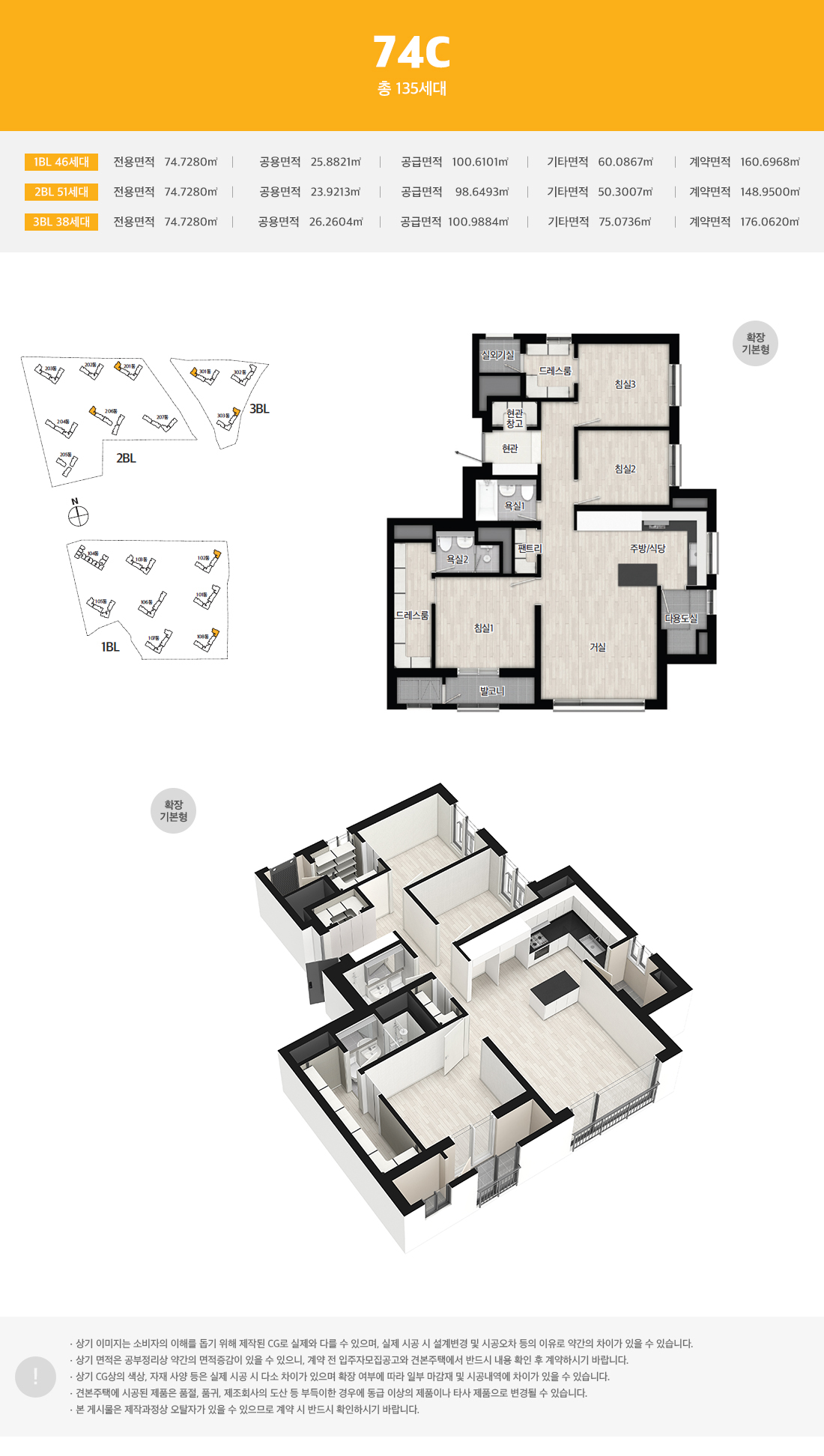 전용 59㎡, 74㎡, 84㎡ 타입은 4Bay 판상형 구조로 설계되어 채광과 통풍이 우수합니다. 알파룸, 팬트리, 드레스룸 등 수납공간이 강화되었으며, 거실과 주방은 개방형 구조로 가족 간 소통이 원활합니다. 특히 84㎡ 타입은 다양한 가족 형태에 맞게 효율적인 공간 구성이 가능합니다.