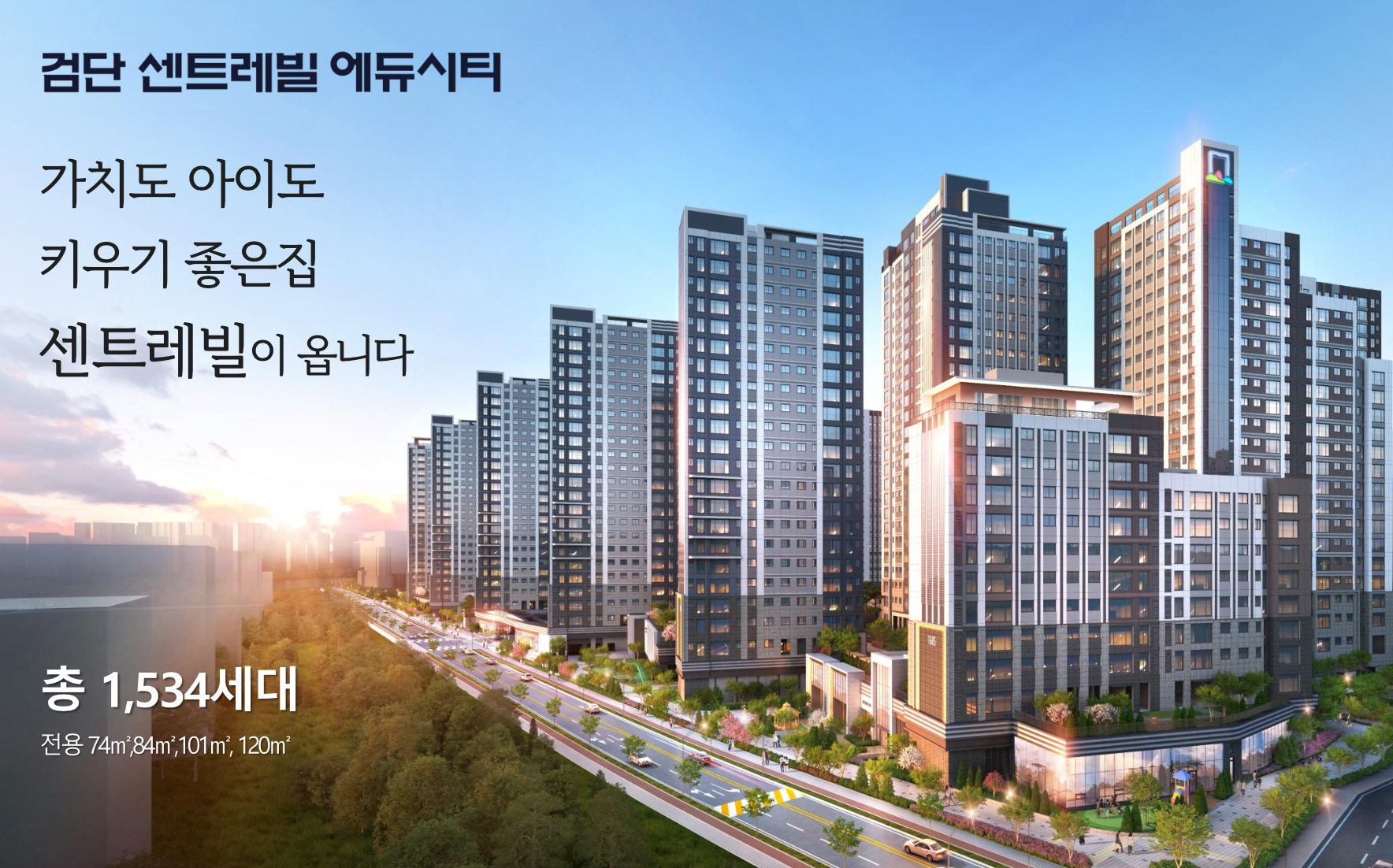 검단 센트레빌 에듀시티는 인천광역시 서구 당하동 693번지, 검단지구 AB8블록에 위치한 대단지 브랜드 아파트입니다. 지하 2층~지상 25층, 총 17개 동으로 구성되며 전용 74~120㎡, 총 1,534세대로 조성됩니다. 일반공급 793세대를 포함하고 있으며, 입주는 2028년 8월 예정입니다. 검단 센트레빌 에듀시티는 GTX-D 노선과 서울지하철 5호선 연장 추진에 따라 교통 접근성이 비약적으로 향상될 지역에 위치해 있으며, 검단신도시의 핵심 미래가치를 선점한 단지로 평가받고 있습니다.