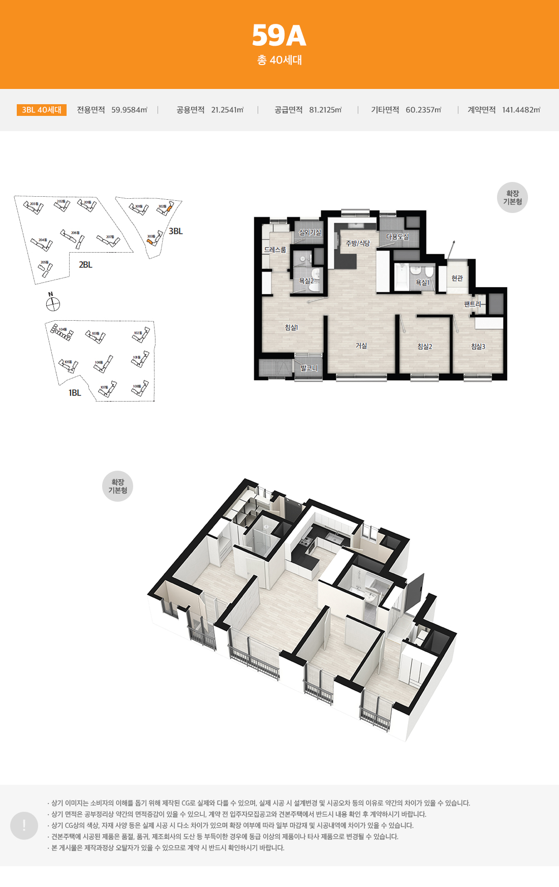 59㎡, 74㎡, 84㎡ 타입으로 구성된 세대는 실용성과 채광을 모두 고려한 맞통풍 구조로 설계되었습니다. 주방과 거실은 개방형으로 구성되어 넓은 시야감을 확보하고, 팬트리와 드레스룸 등 수납공간이 풍부합니다. 일부 세대에는 알파룸이 포함되어 가족 구성에 따라 다양한 활용이 가능합니다.