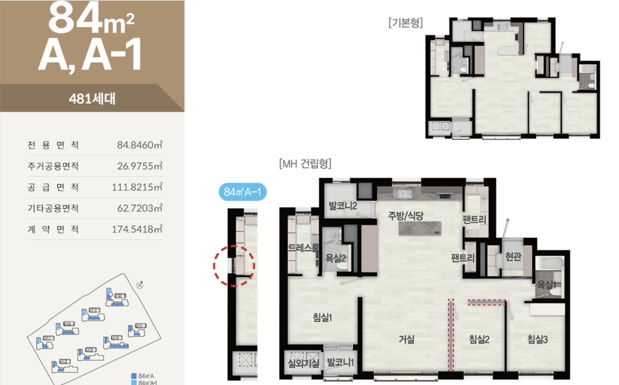 전용 75㎡는 실속형 3Room 구조로 설계되었고, 84㎡는 4Bay 판상형 구조로 채광과 환기에 유리합니다. 110㎡는 알파룸과 대형 팬트리, 드레스룸 등을 갖춘 프리미엄 평면으로, 여유로운 주거 공간을 제공합니다. 세대 간 간섭을 최소화한 단지 배치로 쾌적한 일조 환경을 확보했습니다.