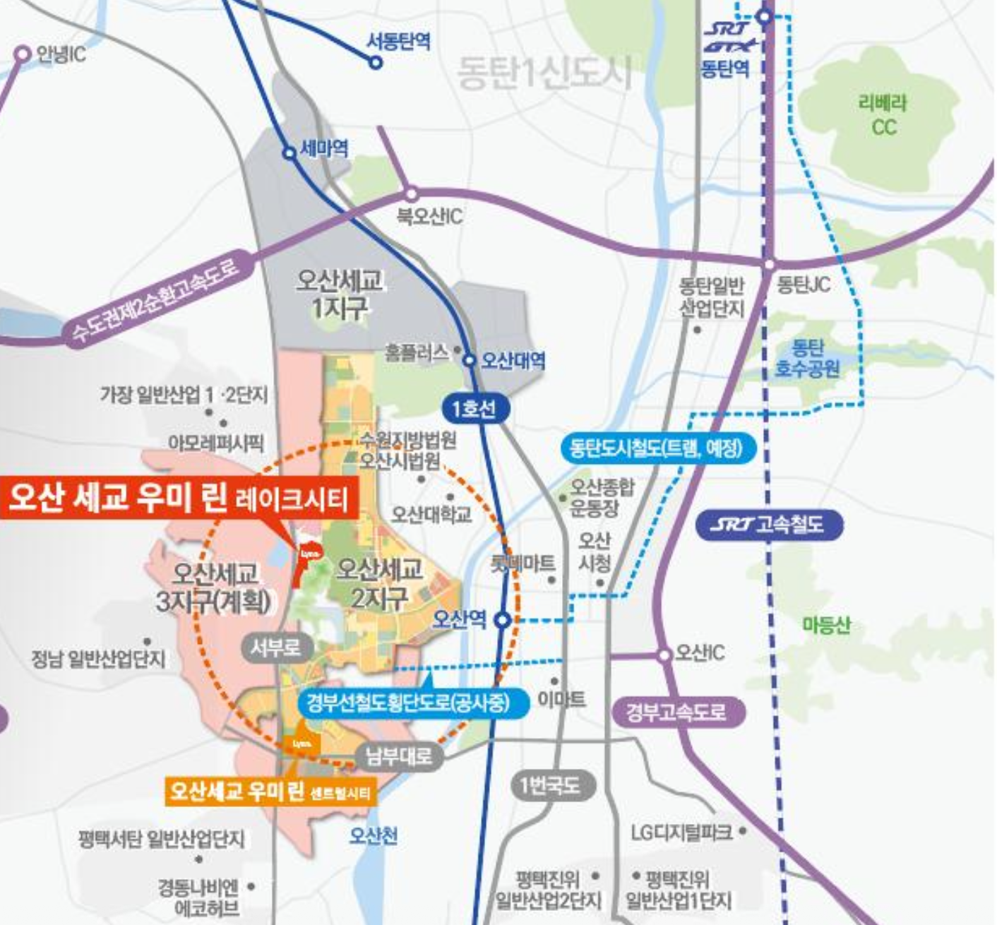 오산세교 우미린 레이크시티는 오산시 서동 50번지 일원에 조성되는 대규모 중대형 아파트로, 세교2와 세교3지구 중심 입지와 함께 반도체 클러스터 배후지라는 미래 프리미엄까지 더해져 높은 주목을 받고 있습니다. 오산세교 우미린 레이크시티는 지하 3층부터 지상 최고 29층, 총 10개 동, 전용 84㎡, 94㎡, 101㎡ 구성의 1,424가구가 마련되며 2029년 7월 입주를 목표로 하고 있습니다. 세교신도시의 확장 개발과 배후 산업 수요가 더해지며 장기적인 가치 상승 가능성이 충분한 단지입니다.