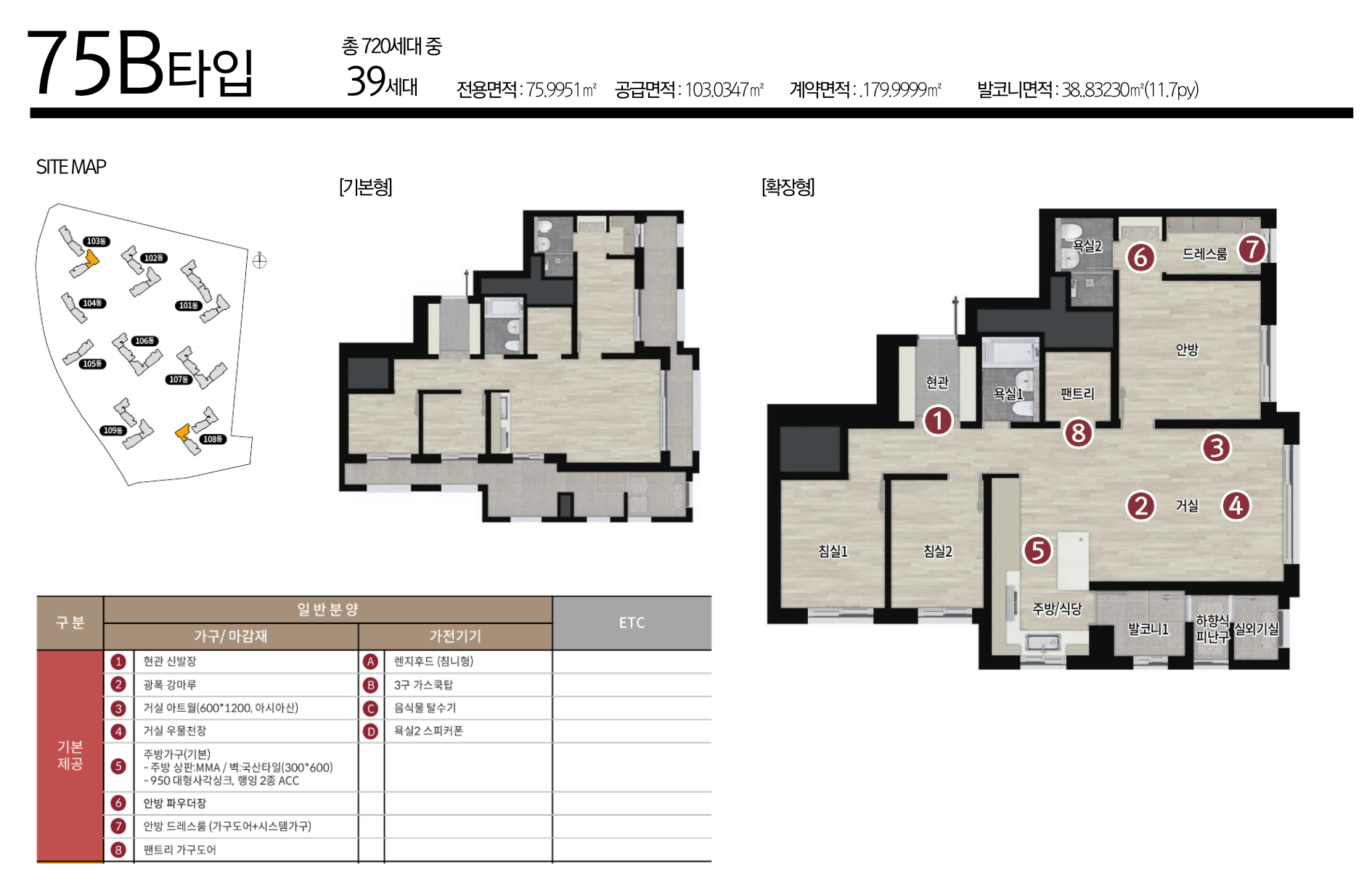 실내는 차분한 색감과 실용 중심 설계를 바탕으로 생활 동선이 자연스럽게 구성되어 있습니다. 주방과 욕실은 수납 중심 구조를 적용해 사용성과 편의성을 개선했습니다. 발코니 확장 선택 시 공간감이 넓어져 다양한 라이프스타일을 반영할 수 있습니다.