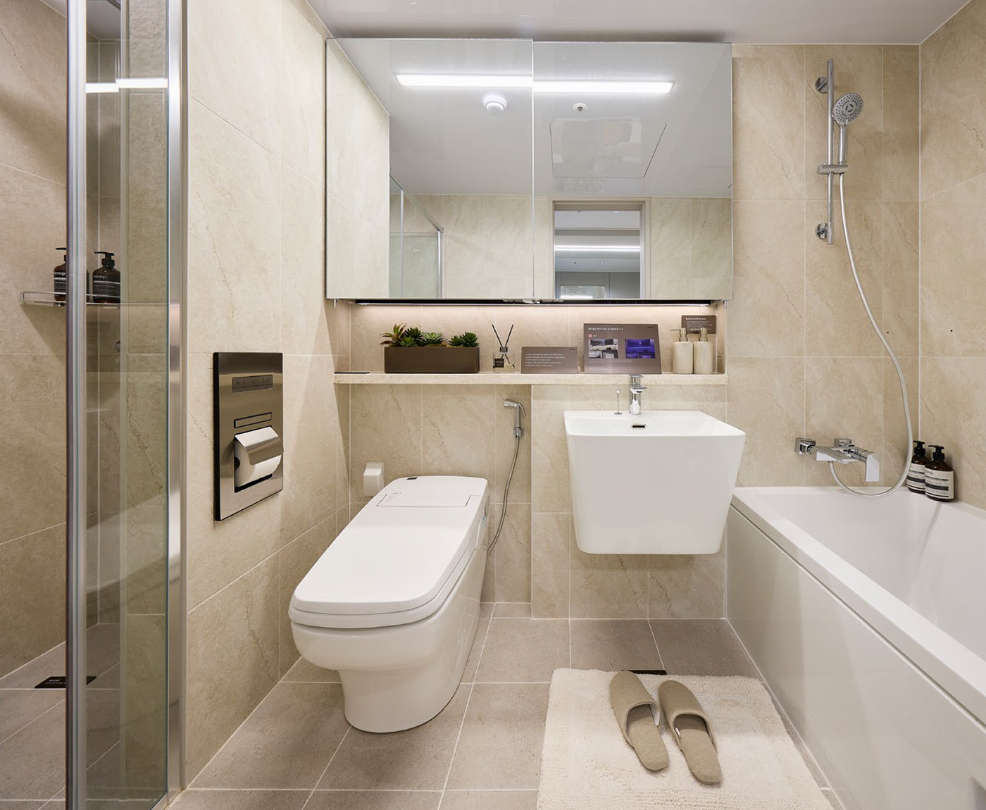 월패드와 스마트스위치를 통한 조명, 난방, 환기 제어가 지원되며 가스 잠금과 주차위치 확인 기능도 적용됩니다. 안면인식 원패스, 지문인식 도어록, 방문객 영상녹화 기능 등 보안과 편의성을 강화한 스마트 시스템이 적용되었습니다.
