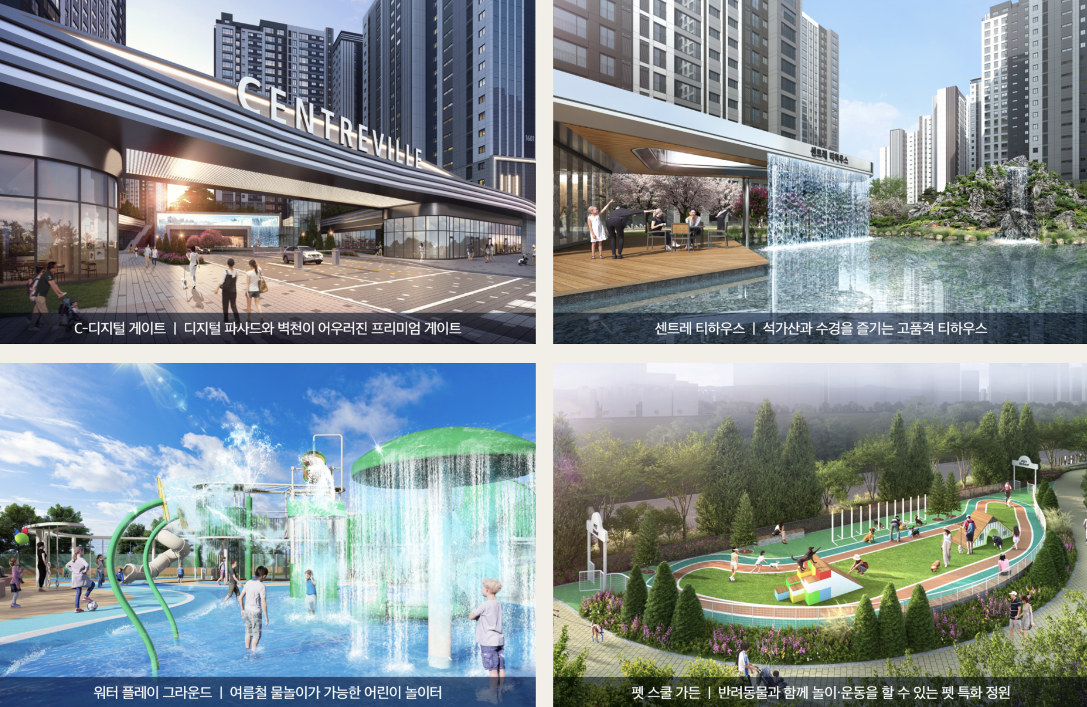 센트웰 프레스티지 커뮤니티는 스포웰, 컬트웰, 에듀웰, 키즈웰 등 전 연령층을 위한 공간으로 구성됩니다. 피트니스, 실내체육관, 사우나 등 건강시설은 물론 라운지와 게스트하우스까지 포함해 고급 커뮤니티 구성이 돋보입니다. 아이들을 위한 돌봄 및 학습 공간도 마련돼 가족 단위의 만족도가 높습니다.