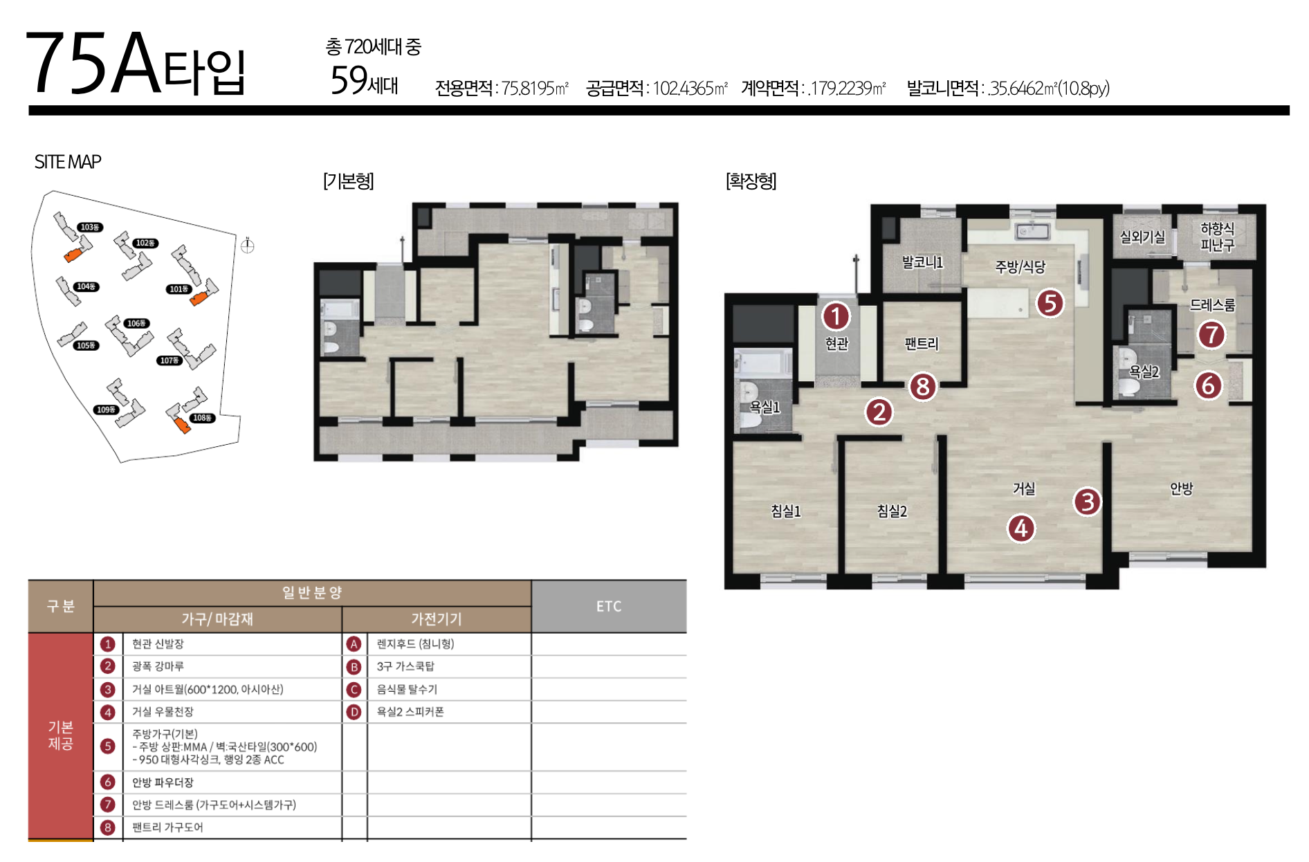 실내는 차분한 색감과 실용 중심 설계를 적용해 생활 동선과 수납 효율을 높였습니다. 주방과 욕실은 수납 중심 배치를 통해 사용 편의성을 극대화했습니다. 발코니 확장 시 넓은 공간감을 확보해 다양한 라이프스타일에 대응할 수 있는 구조입니다.