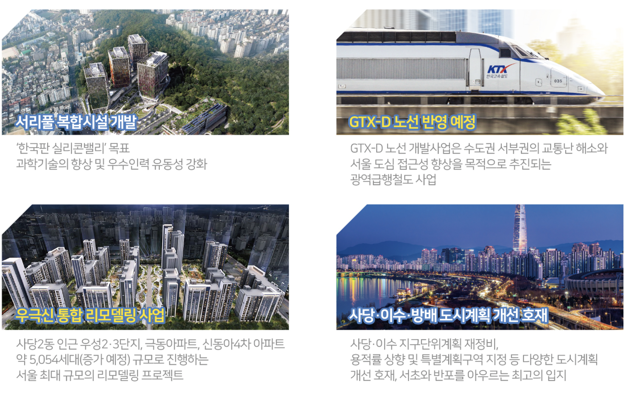 단지 인근 이수역은 지하철 4호선과 7호선을 함께 이용할 수 있는 환승역으로 주요 도심 접근이 수월합니다. 강남과 여의도, 종로 방향 이동이 편리해 직주 이동의 효율성이 높게 평가됩니다. 향후 다양한 광역 교통 계획이 논의되며 이동 선택 폭이 넓어질 가능성도 함께 거론되고 있습니다.