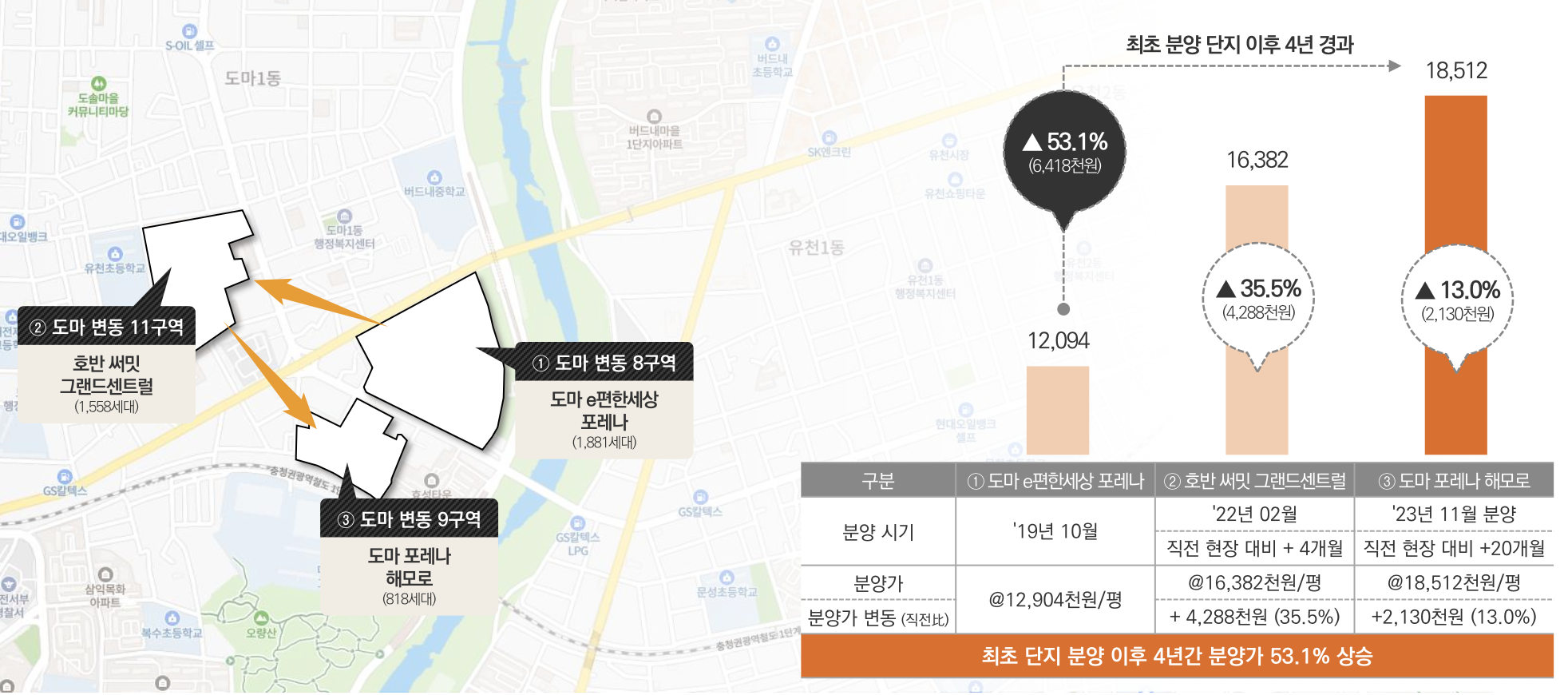 대전한국병원이 가까워 의료 이용이 편리하며 이마트, CGV, 영풍문고 등 대형 상업시설도 인접해 있습니다. 가양초와 성남초가 도보권에 위치하고 가양중, 우성중, 우성고, 보문고 등이 가까워 교육 인프라 활용도가 높습니다.