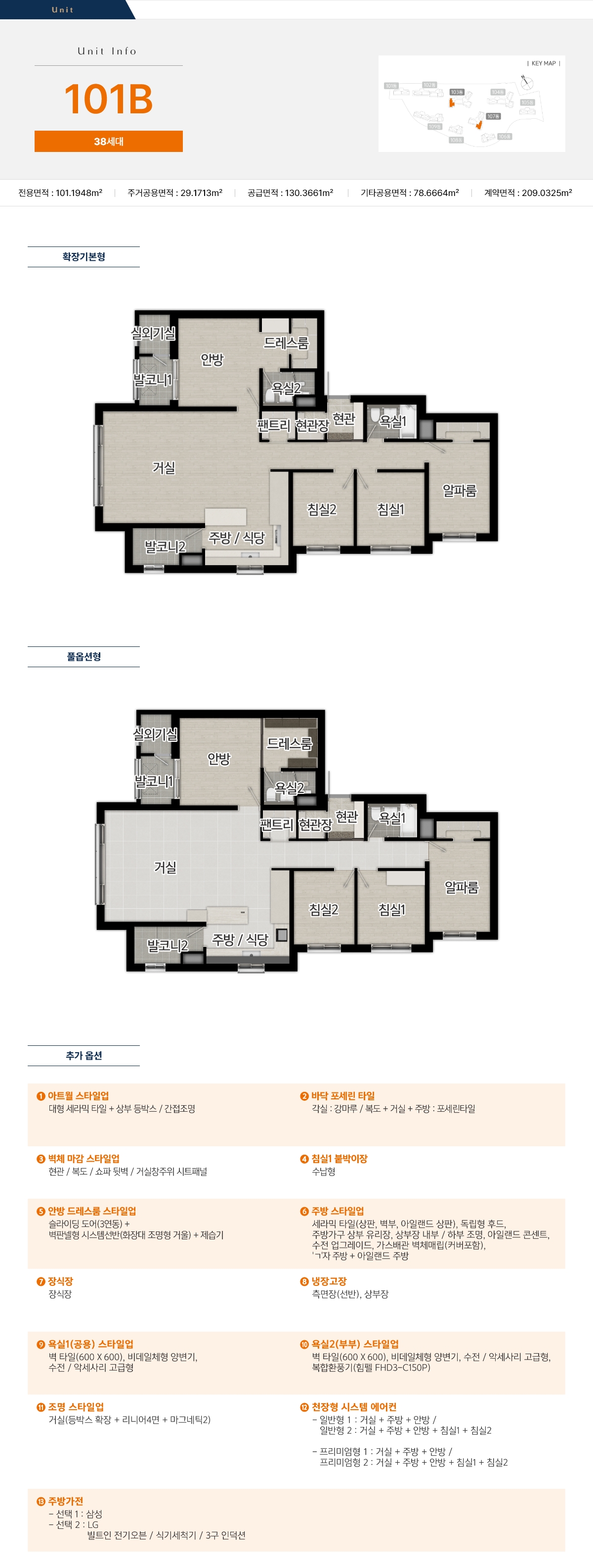 세대별 창고를 무상 제공해 계절용품과 대형 물품 보관이 편리합니다. 공기청정 환기 시스템과 에너지 절감, 재난안전 스마트 시스템을 적용했습니다.