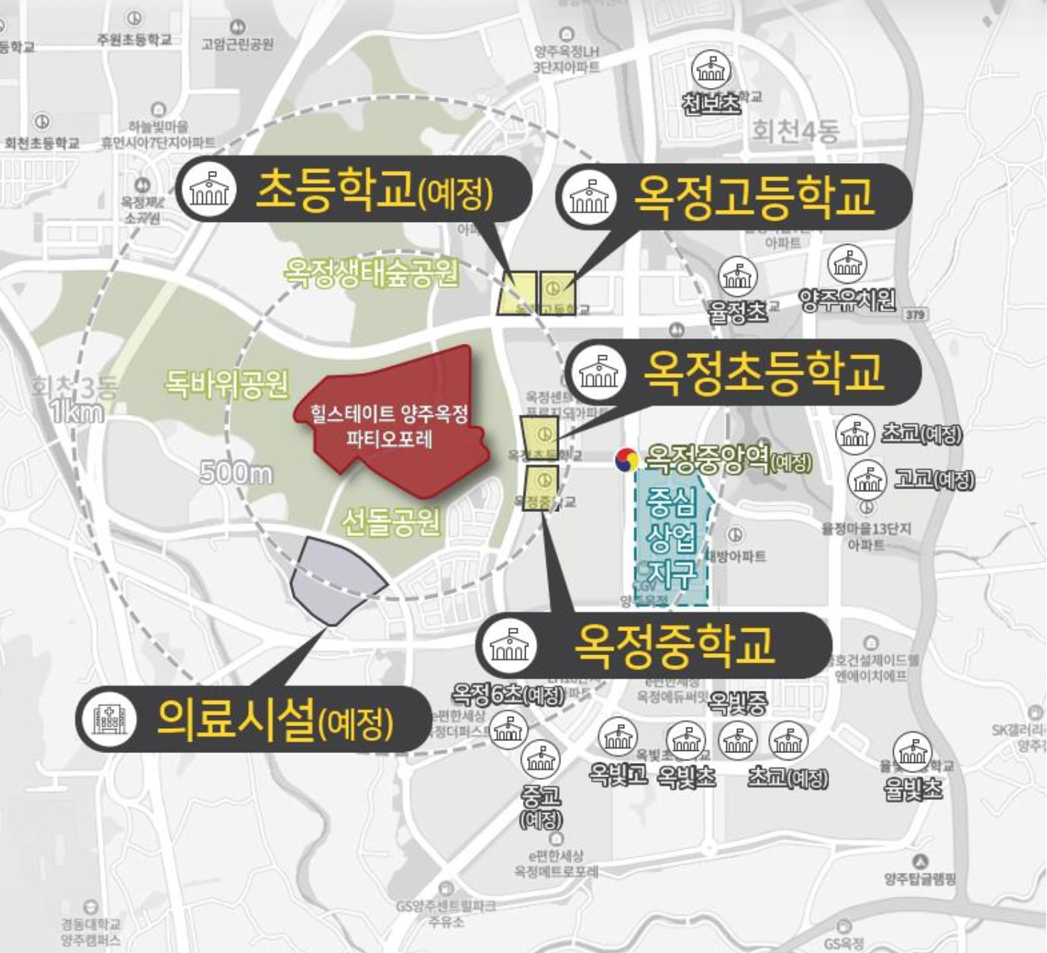 대형마트, 영화관, 은행, 병원, 관공서 등 옥정신도시 상업시설이 가까워 장보기와 문화생활을 편리하게 누릴 수 있습니다. 또한 안심하고 통학할 수 있는 옥정초, 옥정중, 옥정고 등 우수한 교육환경이 마련되어 있습니다.